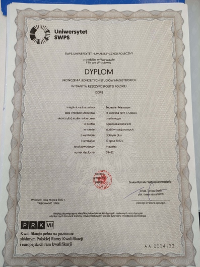 Jaki jest zakres porad oferowanych przez Sebastian Macyszyn?Sebastian Macyszyn to psycholog, psychoterapeuta. Na podstawie swojego doświadczenia i wykształcenia Sebastian Macyszyn oferuje usługi takie jak: psychoterapia indywidualna, psychoedukacja, konsultacja psychologiczna (pierwsza wizyta), interwencja kryzysowa, Poradnictwo z zakresu profilaktyki zdrowia psychicznego, Psychoterapia.