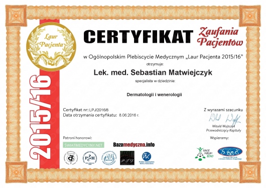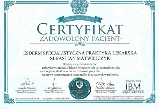 Posiadam również certyfikaty na wszystkie wykonywane zabiegi i procedury medyczne.