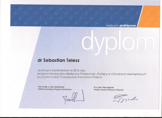 Polecam dr. Telesz, wywiad był bardzo szczegółowy, lakarz wziął pod uwagę wszystkie możliwe przyczyny moich dolegliwości. Wizyta odbyła się punktualnie.