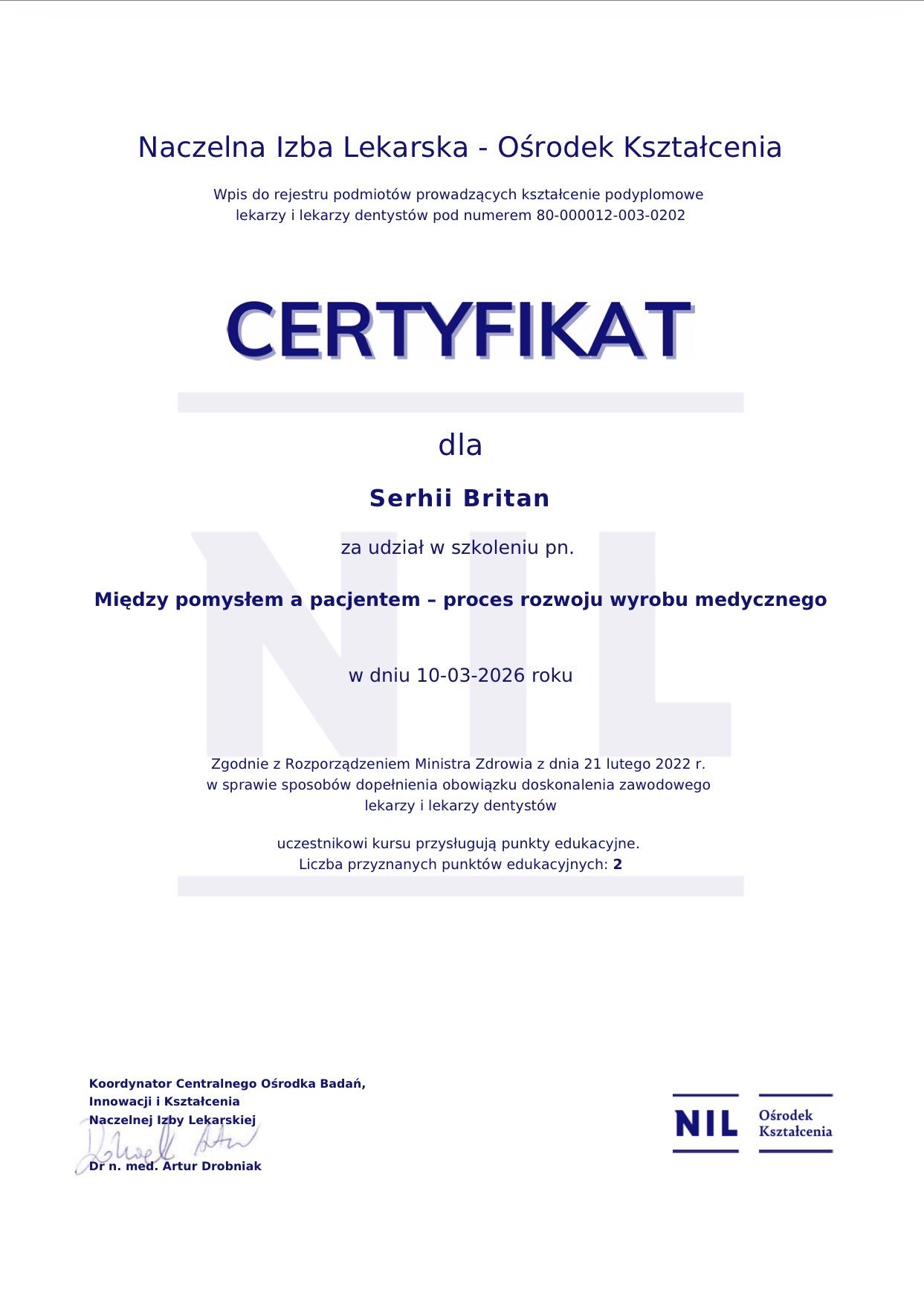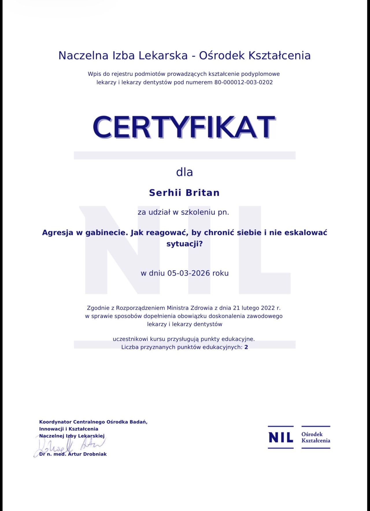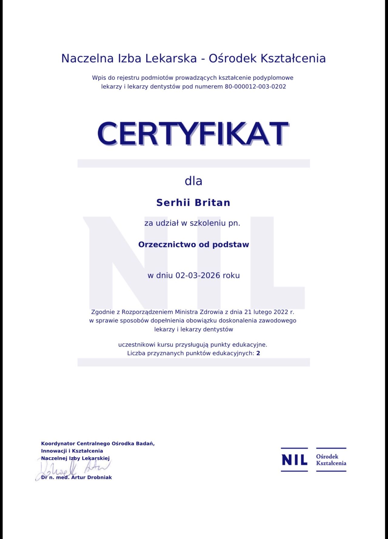Cześć! Jestem Serhii Britan – stomatolog z pasją do precyzyjnej chirurgii stomatologicznej i endodoncji mikroskopowej.