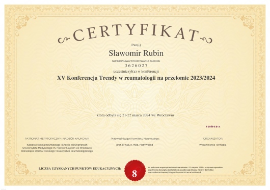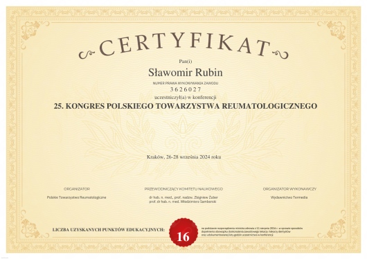 Czy Sławomir Rubin przyjmuje online, bez konieczności pojawiania się w placówce?Tak, Sławomir Rubin oferuje konsultacje online. Wybierz opcję „konsultacja online” przy umawianiu wizyty, a zobaczysz dostępne terminy.