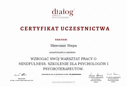 • "Podstawowe narzędzia i techniki mindfulness w pracy psychologa"