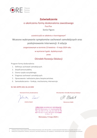 Pani Sonia to niezwykle ciepła i empatyczna osoba. Wyróżnia się ogromną wyrozumiałością oraz pełnym profesjonalizmem. Wszystko potrafi wytłumaczyć w sposób jasny i zrozumiały, a w trudnych momentach daje ogromne wsparcie. Widać, że jest bardzo zaangażowana w swoją pracę a spotkania z nią dają poczucie bezpieczeństwa i realną pomoc. Serdecznie polecam:)