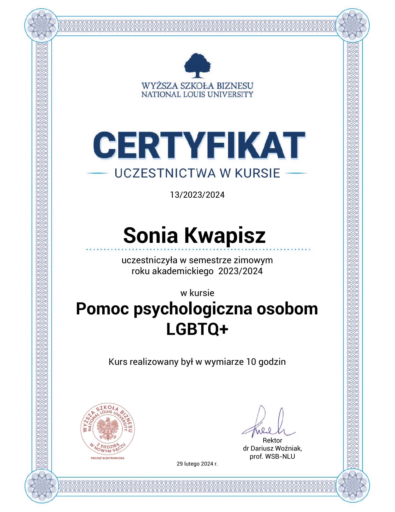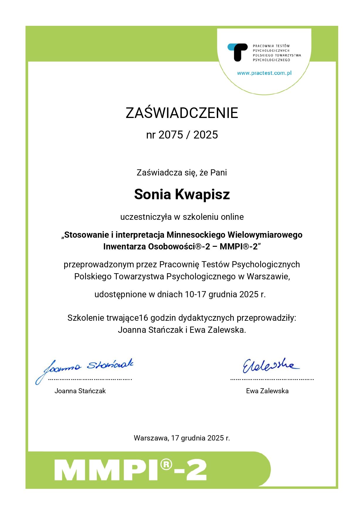 W jakich językach konsultuje Sonia Kwapisz?Języki, których używa Sonia Kwapisz to polski.