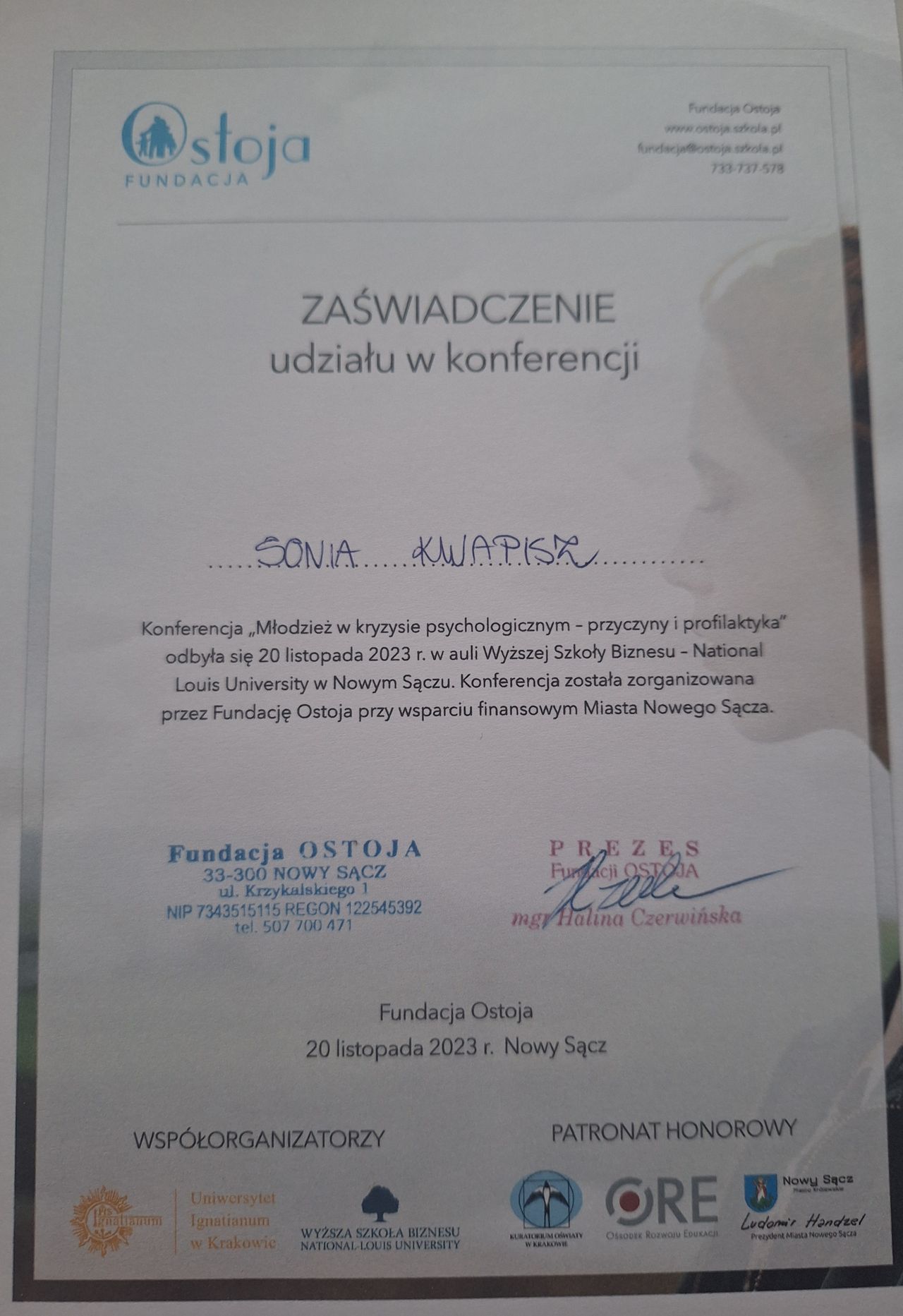 Dalsze kształcenie jest dla mnie niezwykle ważne – pozwala mi patrzeć na problemy pacjenta z wielu perspektyw, by lepiej rozumieć złożoność ludzkich trudności.