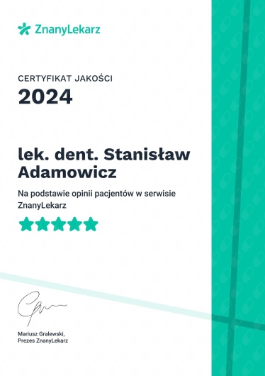 Bardzo zaangażowany i dokładny, dużo dodatkowych porad jak dbać o jamę ustną