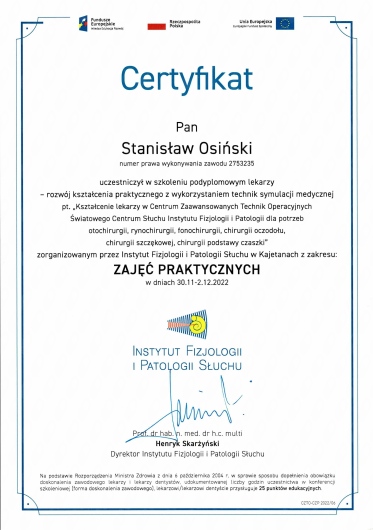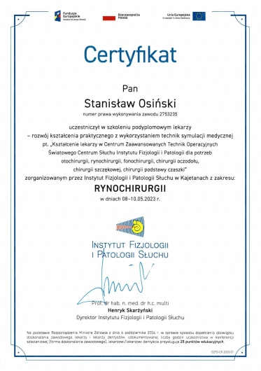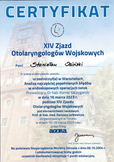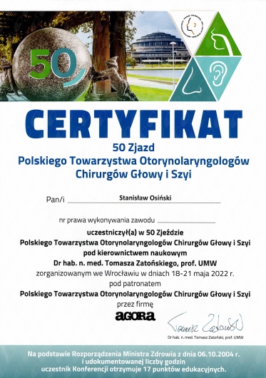 Jaki jest zakres porad oferowanych przez Stanisław Osiński?Stanisław Osiński to laryngolog. Na podstawie swojego doświadczenia i wykształcenia Stanisław Osiński oferuje usługi takie jak: konsultacja laryngologiczna, kwalifikacja do operacji.