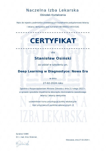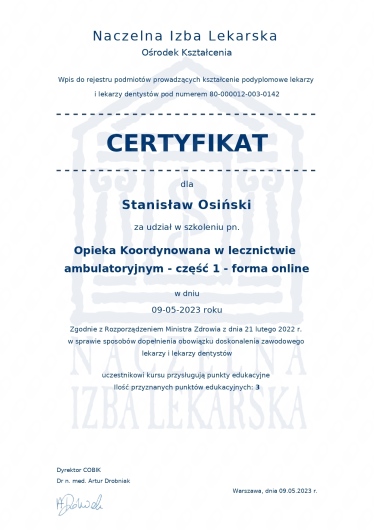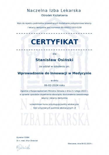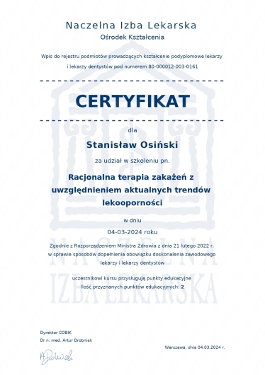 Czy Stanisław Osiński przyjmuje online, bez konieczności pojawiania się w placówce?Nie, w tym momencie Stanisław Osiński nie oferuje konsultacji online.