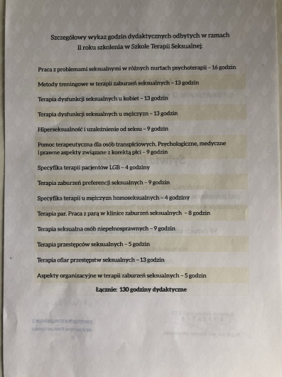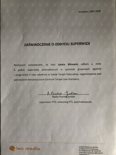 Odbywa 4 letnie szkolenie z zakresu psychoterapii psychodynamicznej.