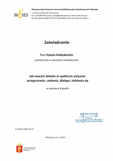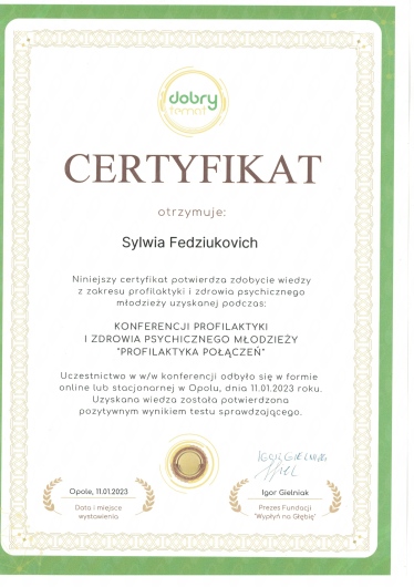 Zdecydowanie polecam! Pani Sylwia ma niezwykłą zdolność do nawiązywania pozytywnego kontaktu z dziećmi, co sprawia, że nasz syn czuł się komfortowo i bezpiecznie podczas pierwszej wizyty. Jej podejście jest pełne empatii i cierpliwości. Pomogło to naszemu synowi otworzyć się i radzić sobie z emocjami. Bardzo dziękujemy za pomoc i wskazówki do dalszej pracy w domu.