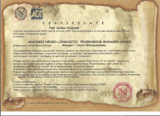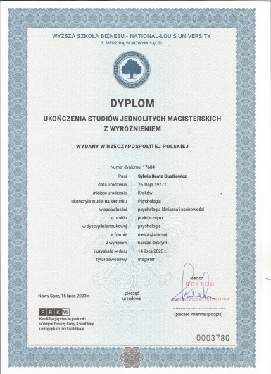 I am a psychologist specializing in clinical and personality psychology. I graduated with distinction with a degree in practical psychology and obtained a Certificate from the Academy of Neuro-Linguistic Programming (NLP).