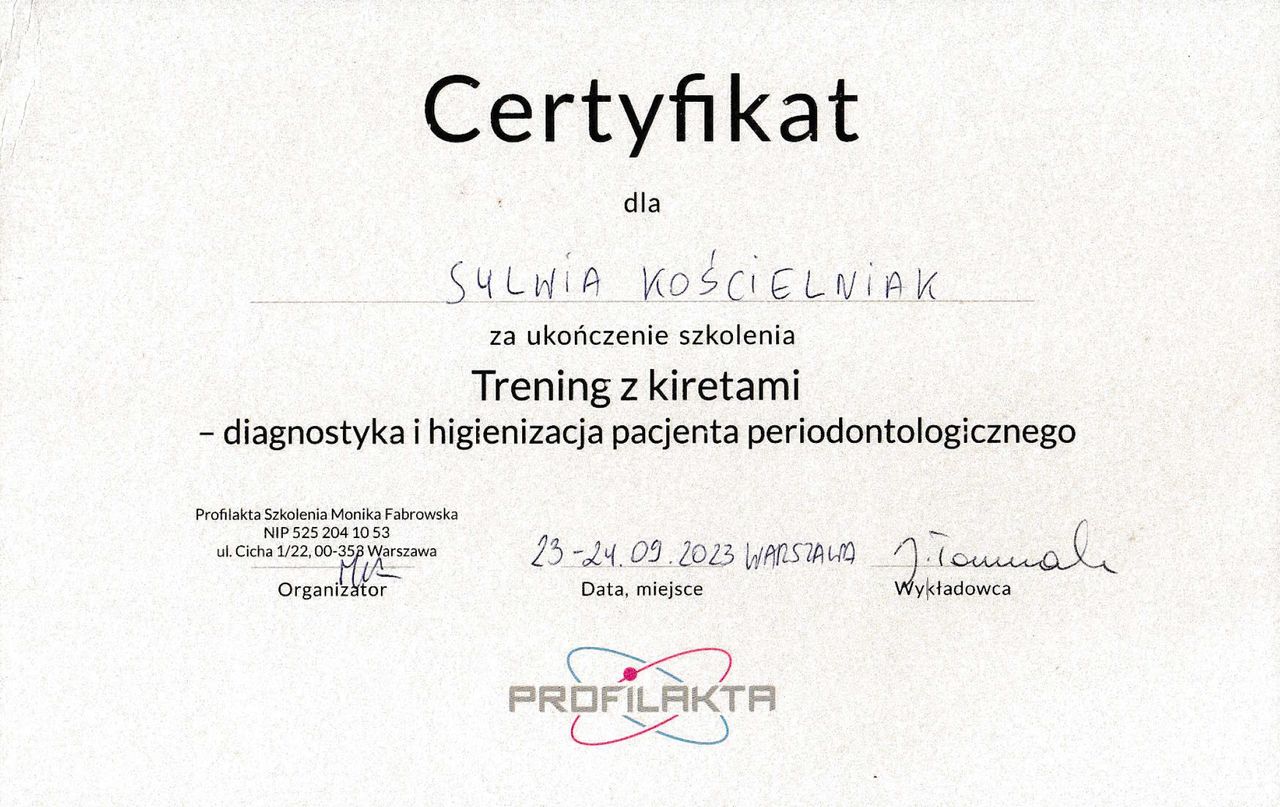 Jaki jest zakres porad oferowanych przez Sylwia Kościelniak?Sylwia Kościelniak to higienistka/higienista stomatologiczny. Na podstawie swojego doświadczenia i wykształcenia Sylwia Kościelniak oferuje usługi takie jak: skaling i polerowanie, wybielanie gabinetowe, higienizacja, Konsultacja higienistki, higienizacja + wybielanie, pakiet higienizacyjny, pakiet higienizacyjny z instruktażem.