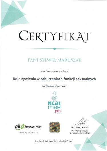 Jaki jest zakres porad oferowanych przez Sylwia Maruszak?Sylwia Maruszak to dietetyk. Na podstawie swojego doświadczenia i wykształcenia Sylwia Maruszak oferuje usługi takie jak: Konsultacja dietetyczna, jadłospis, Analiza składu ciała, plan żywieniowy 7-dniowy.