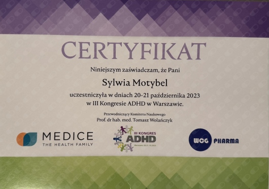 Uczestnictwo w Kongresie ADHD – od dzieciństwa do dorosłości, Warszawa,