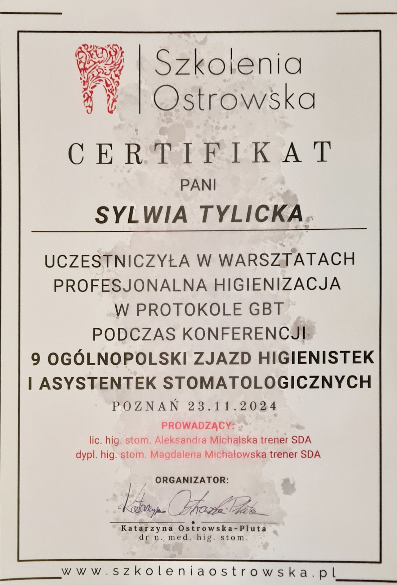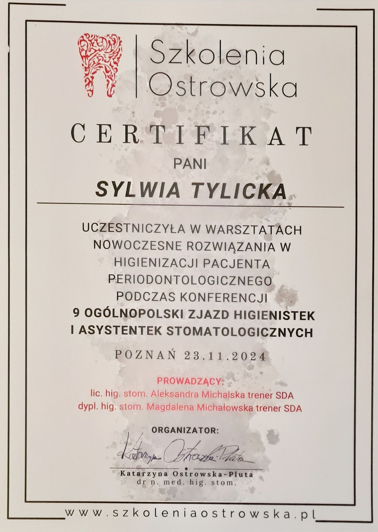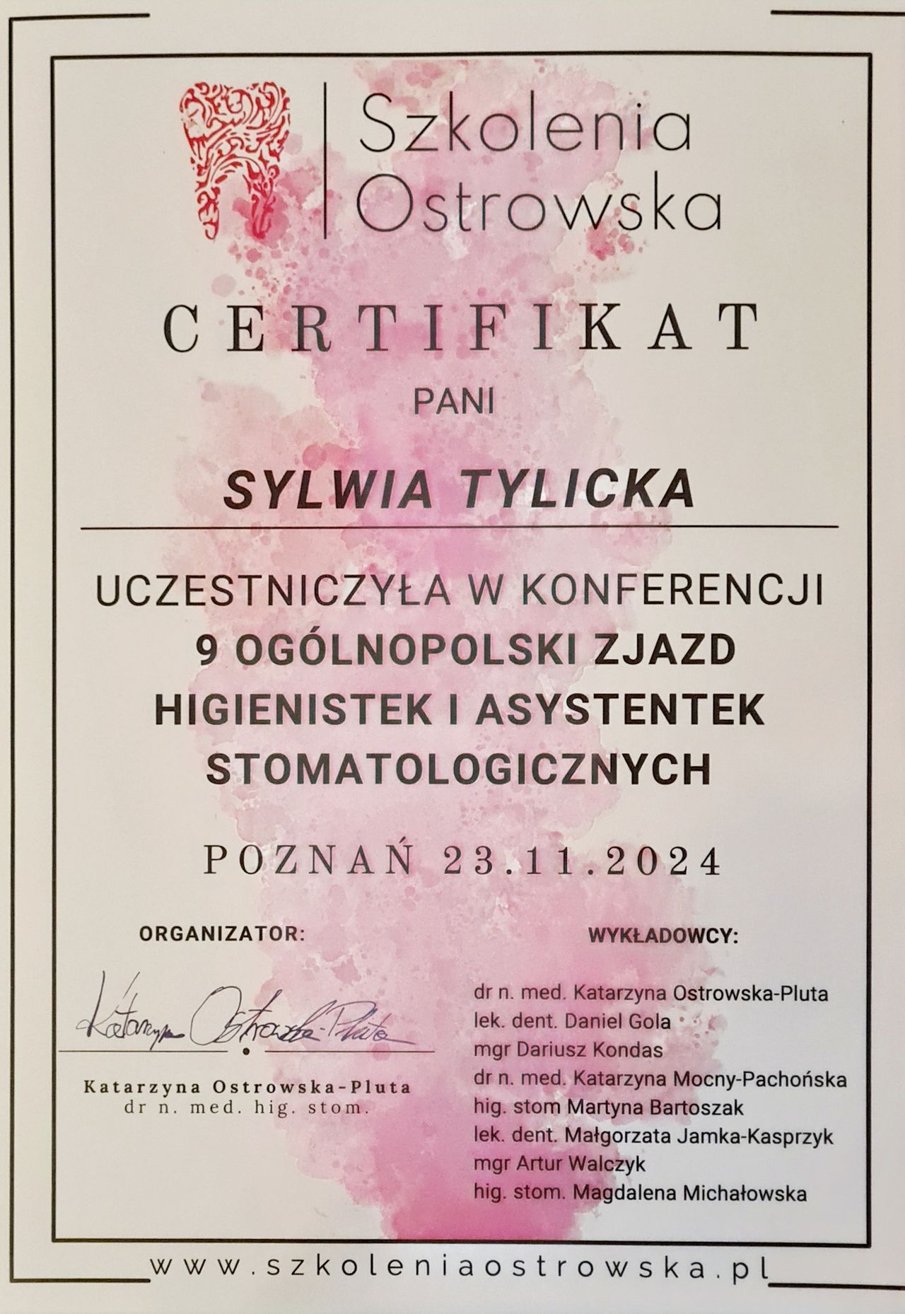 Wiedzę poszerzam biorąc udział w kursach szkoleniowych i sympozjach.