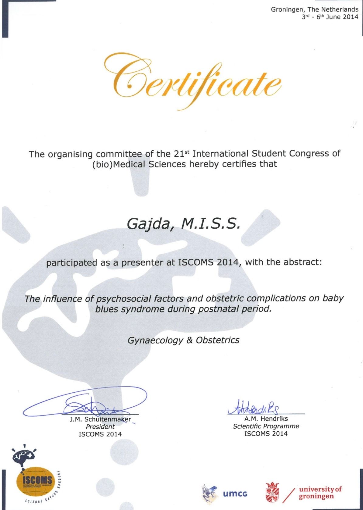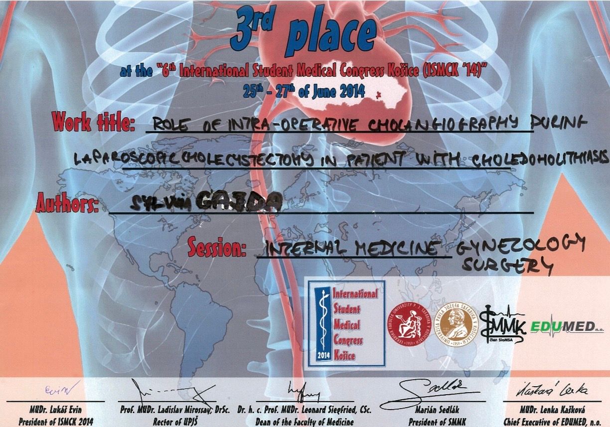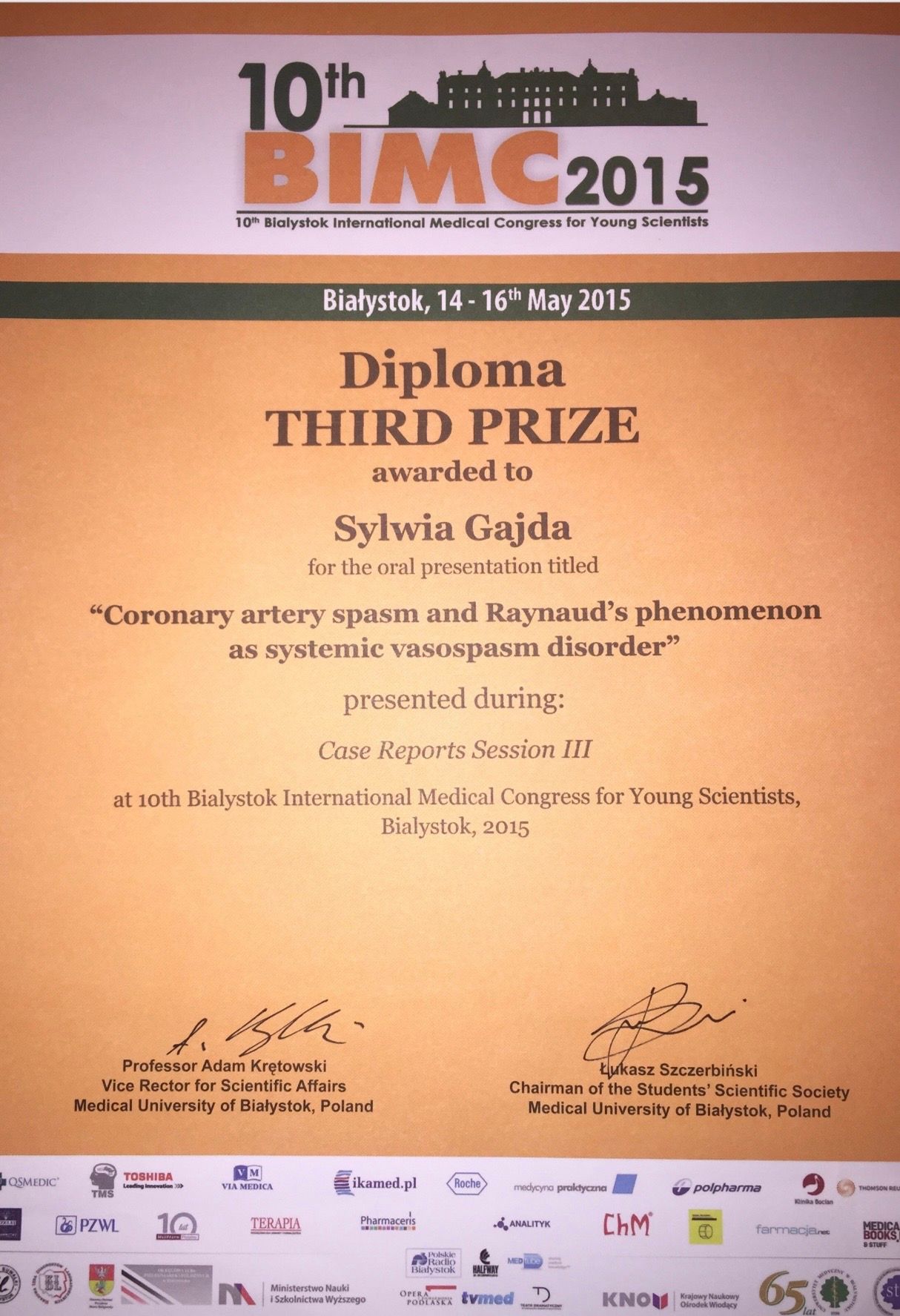 • Brązowy medal na Międzynarodowej Olimpiadzie Biologicznej w Tajpej (Tajwan).