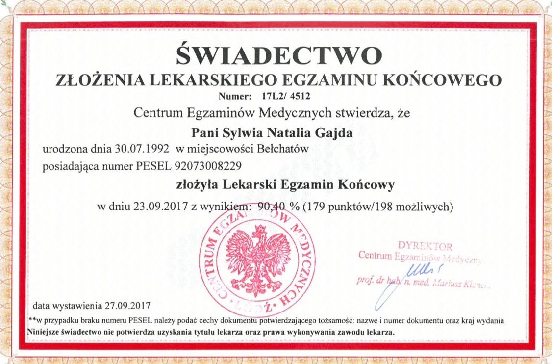 • Wynik 90,4% z Lekarskiego Egzaminu Końcowego (LEK) - 4 w Polsce.