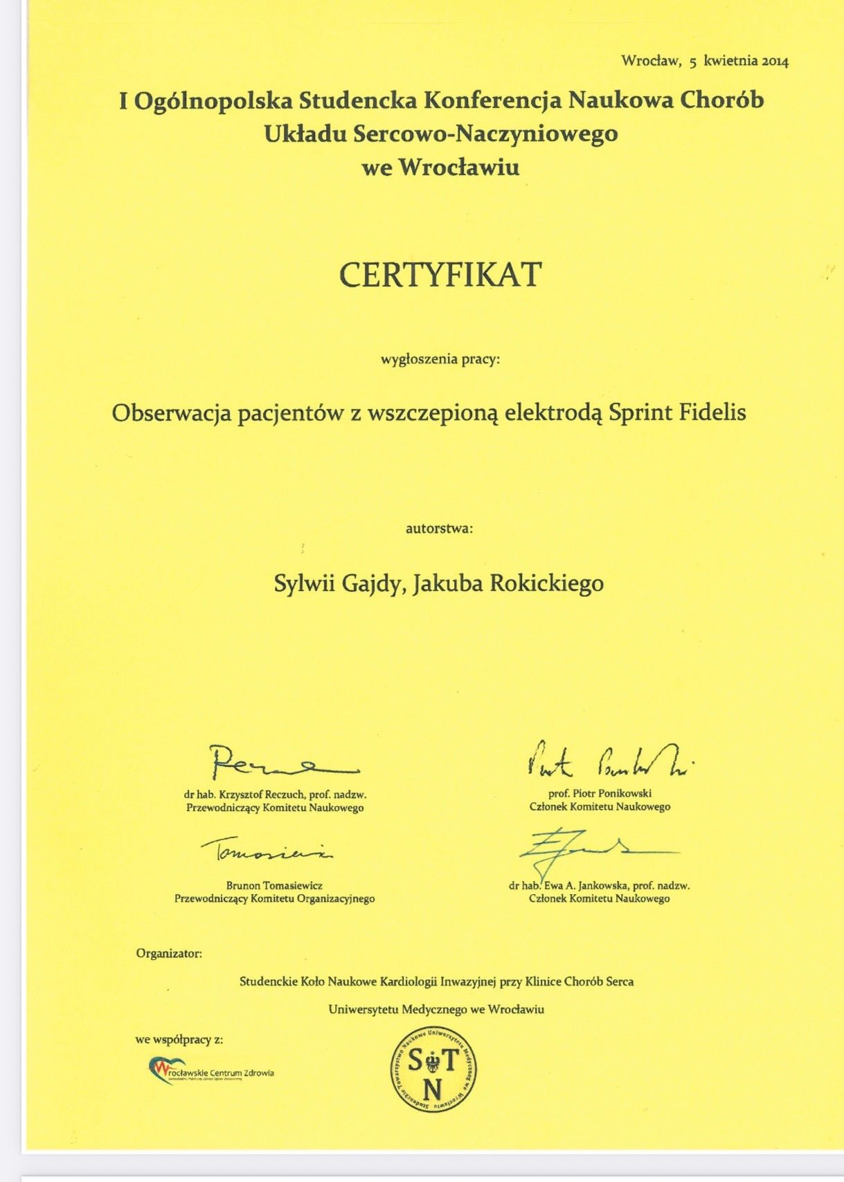 Posiadam bogate zaplecze certyfikowanych umiejętności w zakresie ultrasonografii i procedur zabiegowych, w tym m.in.: Certyfikat Biopsji Cienkoigłowej (Łódzka Szkoła Ultrasonografii), Certyfikat wykonywania termoablacji tarczycy oraz liczne kursy USG (tętnic szyjnych, jamy brzusznej, narządów moszny i krtani).