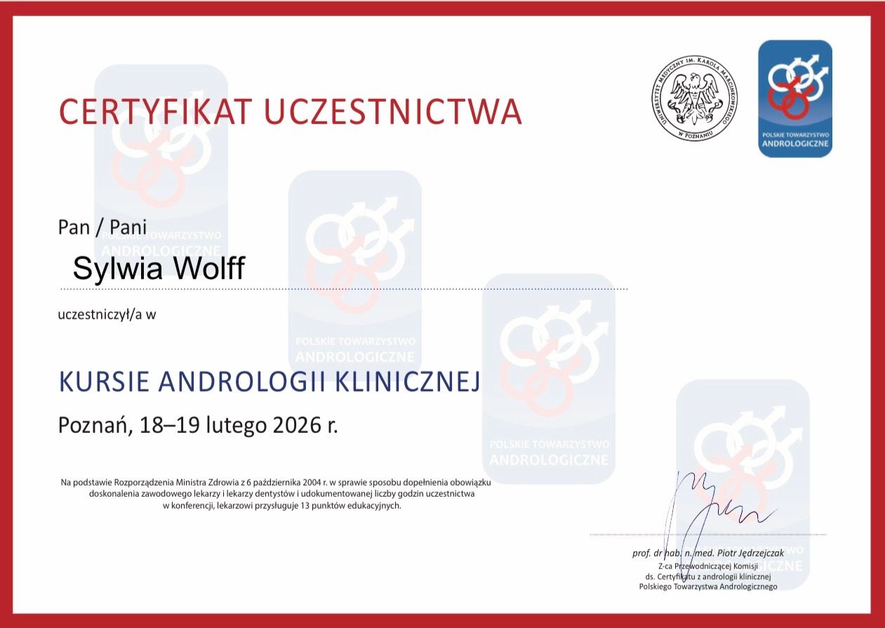 Kurs Andrologii Klinicznej Polskiego Towarzystwa Andrologii 02.2026r. Poznań
