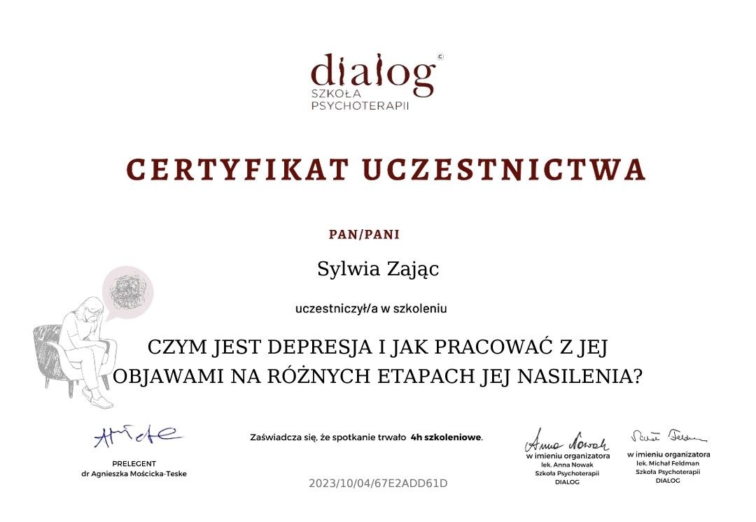 Pani Sylwia z wielką uważnością słucha o czym mówię. Jestem pewna, że w tej terapii pozostanę na dłużej bo widać pozytywne efekty.