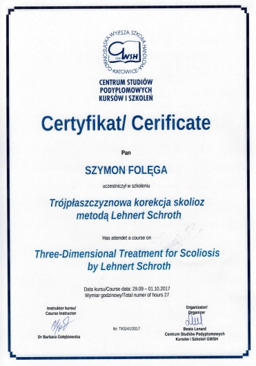 W pracy kieruję się zasadą indywidualnego podejścia do każdego pacjenta, łącząc aktualną wiedzę naukową z praktyką kliniczną. Celem mojej terapii jest nie tylko korekcja postawy, ale również poprawa ogólnej sprawności, świadomości ciała i komfortu życia.