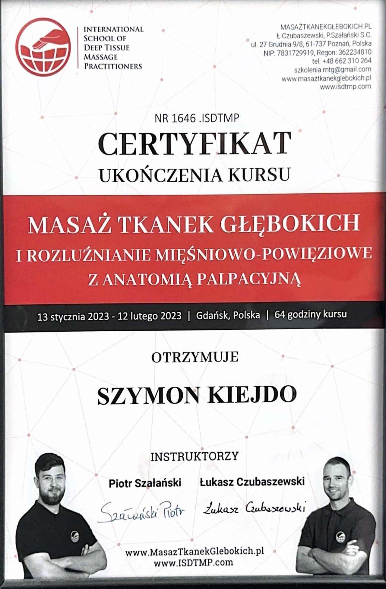 Jaki jest zakres porad oferowanych przez Szymon Kiejdo?Szymon Kiejdo to fizjoterapeuta, technik masażysta. Na podstawie swojego doświadczenia i wykształcenia Szymon Kiejdo oferuje usługi takie jak: Terapia manualna, fizjoterapia, Wizyta domowa, Fizjoterapia pourazowa, konsultacja fizjoterapeutyczna, masaż klasyczny, masaż limfatyczny, masaż relaksacyjny, masaż sportowy, masaż tkanek głębokich.