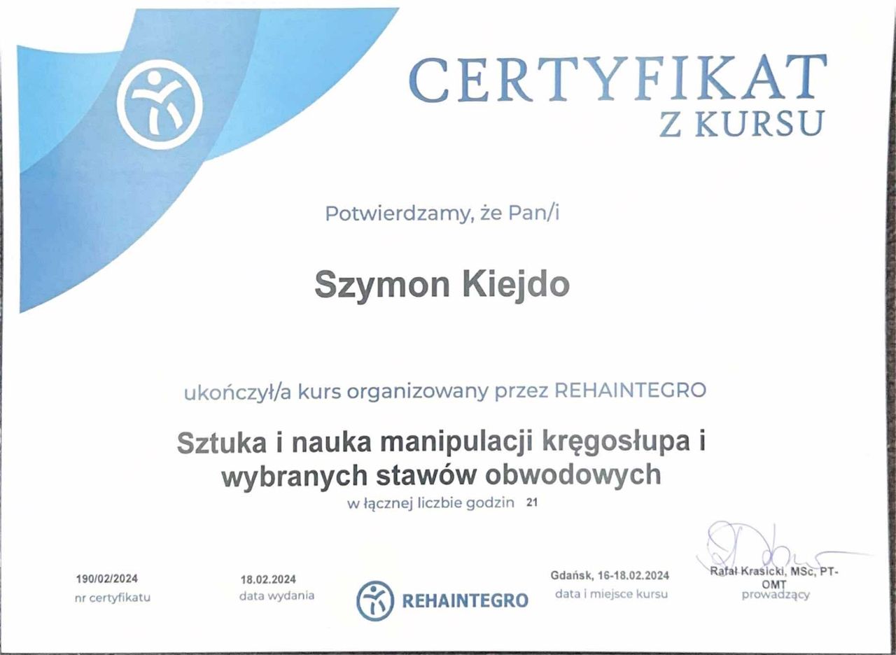 Szymon to najlepszy specjalista z jakim miałem do czynienia. Ogromna wiedza, indywidualne podejście, wyrozumiałość i empatia to cechy dzięki którym na wizycie czułem się komfortowo i bezpiecznie. Mój przewlekły problem z bólem pleców został rozwiązany w zaledwie kilka wizyt. Jestem pod wrażeniem umiejętności tego fizjoterapeuty.