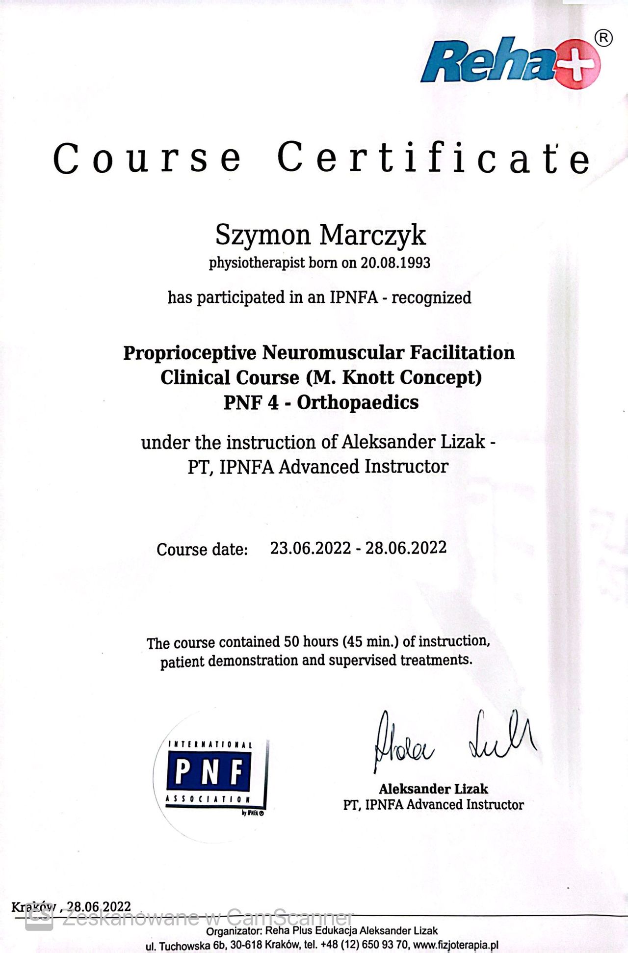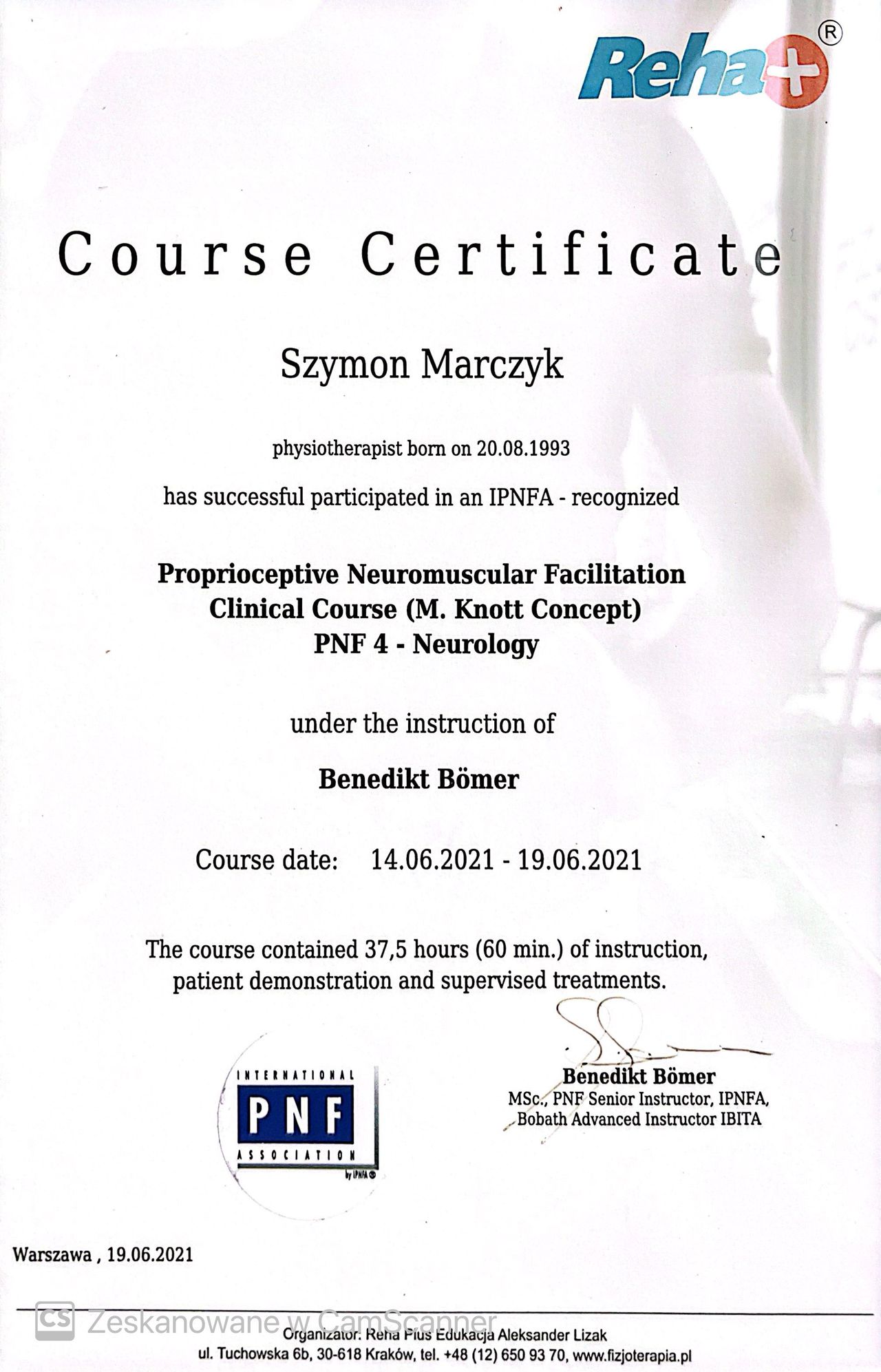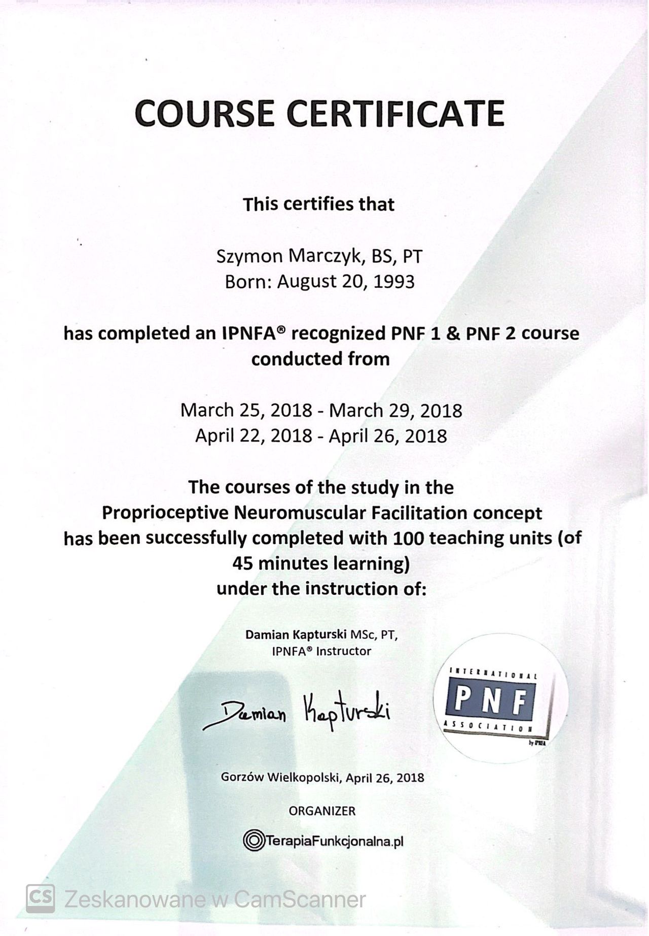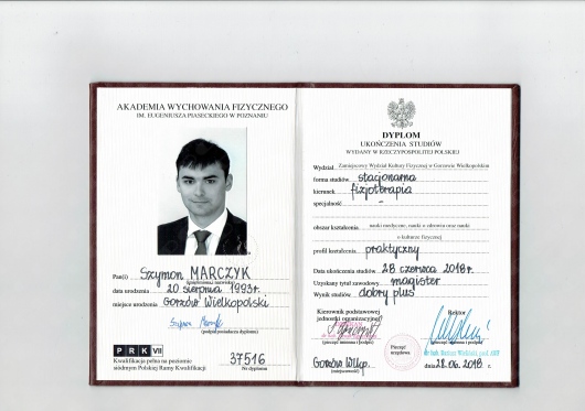 Jestem absolwentem fizjoterapii AWF Poznań- ZWKF Gorzów Wielkopolski ( w 2018 roku obroniłem pracę magisterską). Swoje doświadczenie zdobywałem w trakcie studiów podejmując się pracy w klubach sportowych Wenie Kostrzyn oraz Olimpii Sulęcin, pracując w ORW w Gościmiu oraz uczestnicząc w studenckim kole naukowym "ReFiz" czego zwieńczeniem były badania dotyczące osób chorych na stwardnienie rozsiane i dalej wystąpienie na konferencji naukowej. Po studiach podjąłem się pracy w na oddziale rehabilitacji neurologicznej w CKR Konstancin, gdzie mogłem rozwijać swoje umiejętności poprzez pracę z osobami dorosłymi z uszkodzeniem ośrodkowego układu nerwowego. Ukończone szkolenia zawodowe: