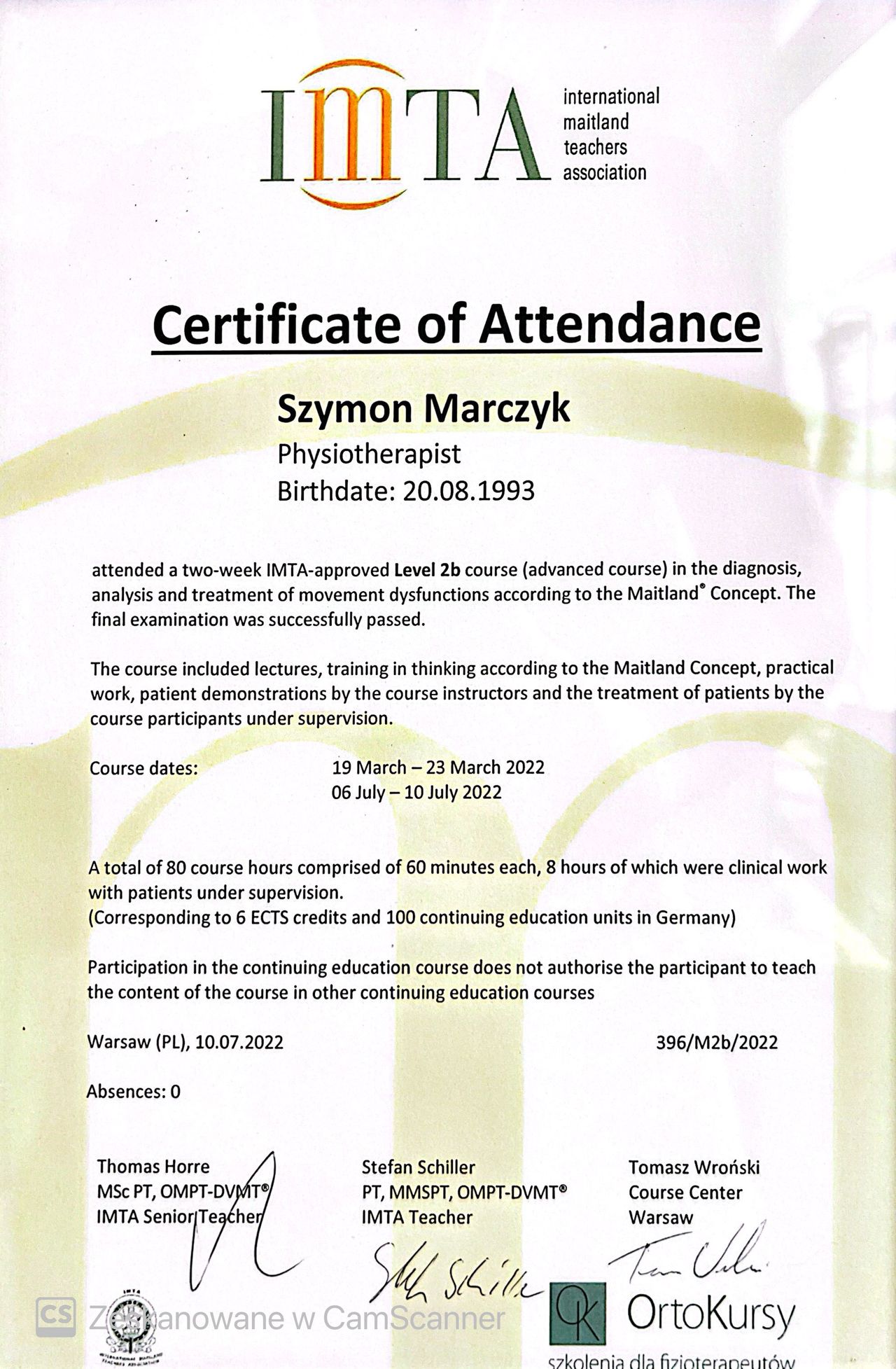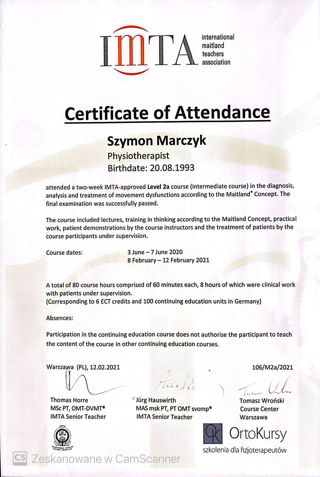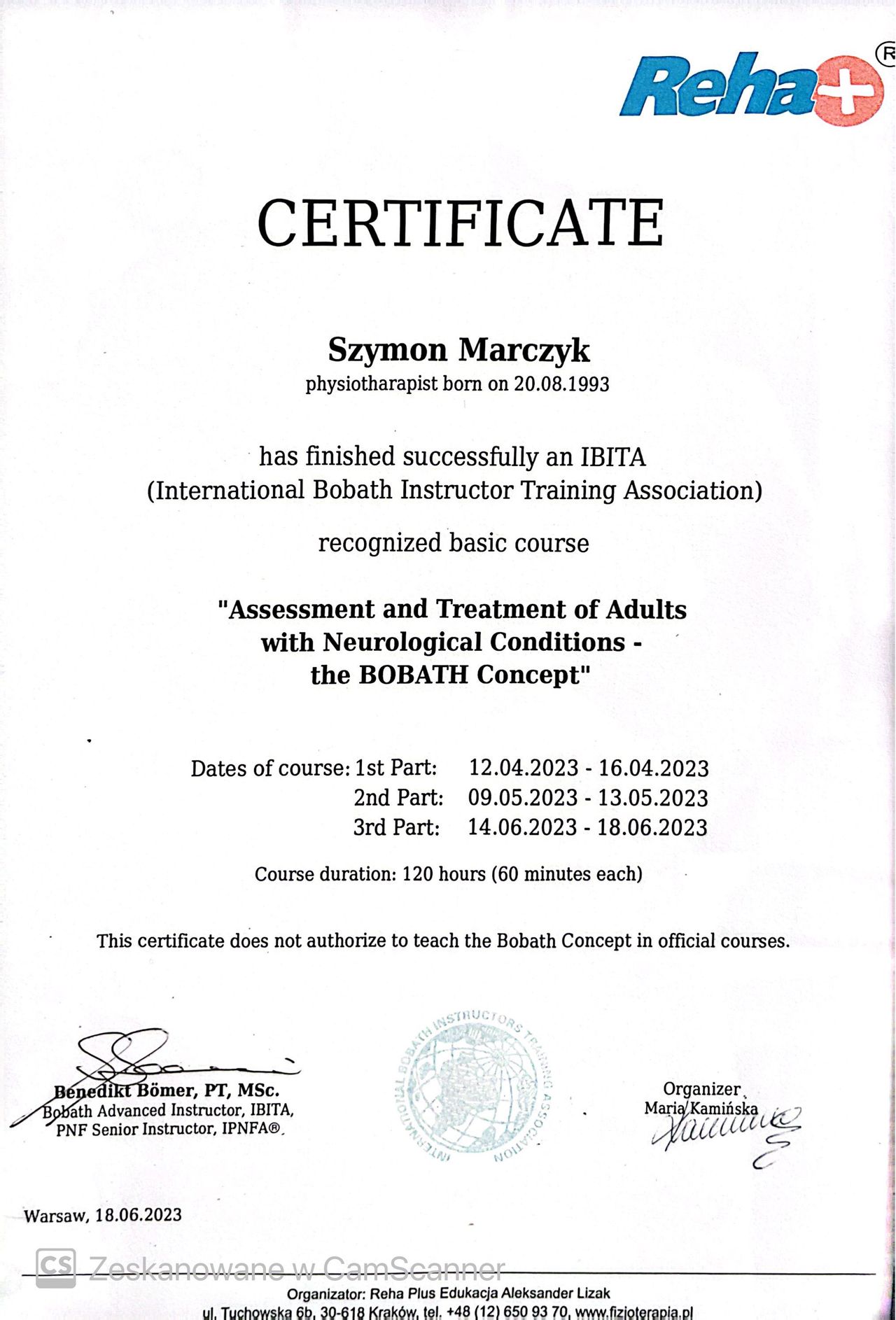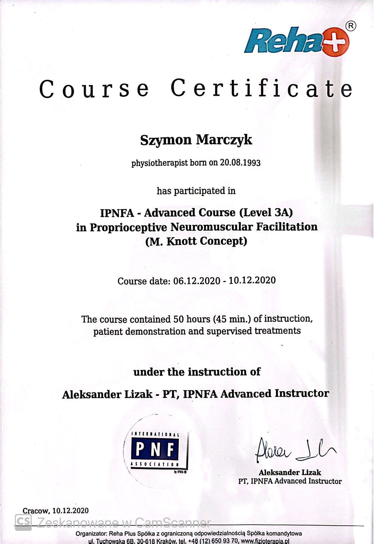 Jestem absolwentem fizjoterapii AWF Poznań- ZWKF Gorzów Wielkopolski ( w 2018 roku obroniłem pracę magisterską). Swoje doświadczenie zdobywałem w trakcie studiów podejmując się pracy w klubach sportowych Wenie Kostrzyn oraz Olimpii Sulęcin, pracując w ORW w Gościmiu oraz uczestnicząc w studenckim kole naukowym "ReFiz" czego zwieńczeniem były badania dotyczące osób chorych na stwardnienie rozsiane i dalej wystąpienie na konferencji naukowej. Po studiach podjąłem się pracy w na oddziale rehabilitacji neurologicznej w CKR Konstancin, gdzie mogłem rozwijać swoje umiejętności poprzez pracę z osobami dorosłymi z uszkodzeniem ośrodkowego układu nerwowego. Ukończone szkolenia zawodowe: