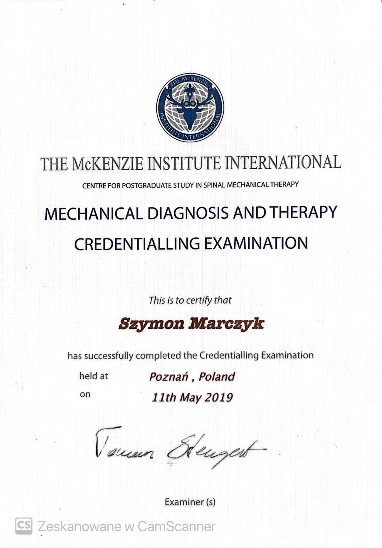 -Mechaniczne Diagnozowanie i Terapia zespół bólowych kręgosłupa i stawów obwodowych wg McKenzie'go (uwierzytelniony terapeuta