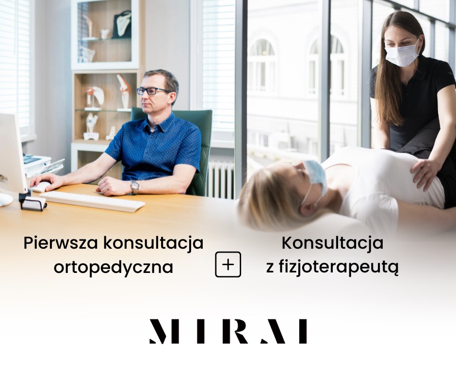 Dla każdego nowego Pacjenta w cenie wizyty u ortopedy oferujemy konsultację z fizjoterapeutą. Na taką wizytę można się umówić w MIRAI Clinic w Otwocku.
