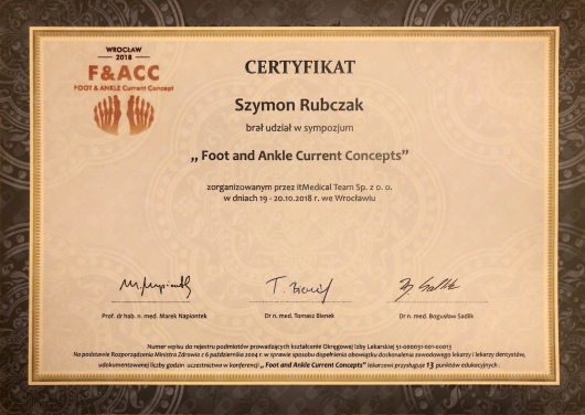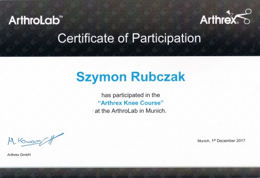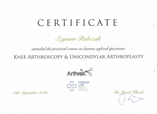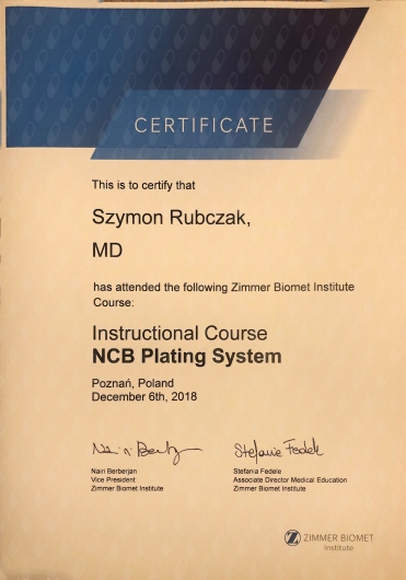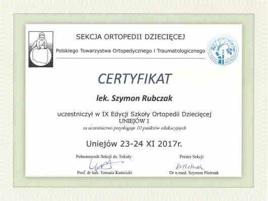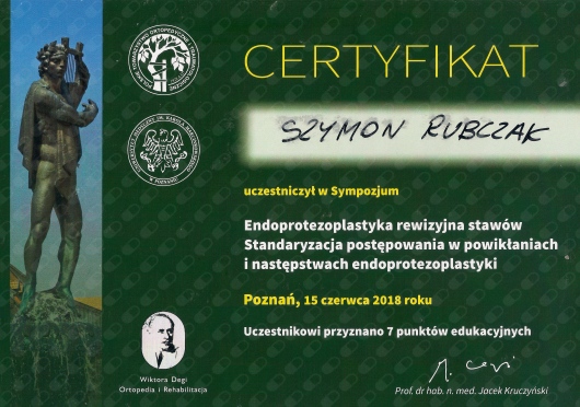 Szkolenie specjalizacyjne odbyłem na oddziale ortopedycznym Szpitala Wojewódzkiego w Poznaniu.