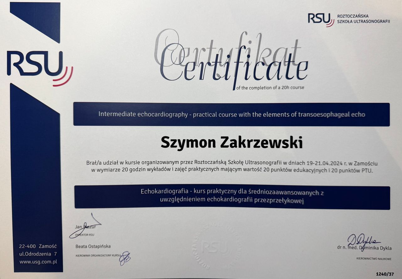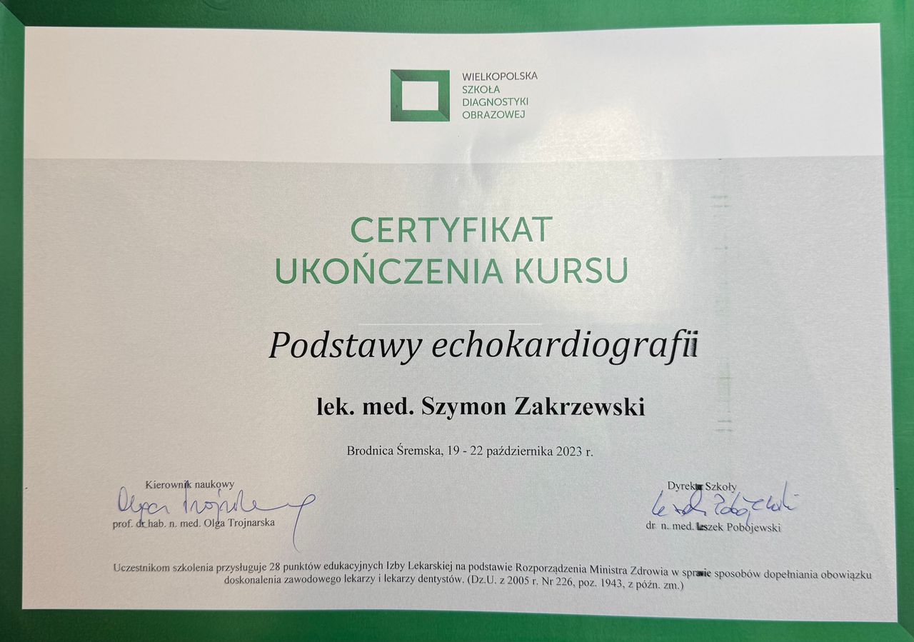 Jaki jest zakres porad oferowanych przez Szymon Zakrzewski?Szymon Zakrzewski to w trakcie specjalizacji (kardiolog). Na podstawie swojego doświadczenia i wykształcenia Szymon Zakrzewski oferuje usługi takie jak: konsultacja kardiologiczna (kolejna wizyta), konsultacja kardiologiczna + EKG + ECHO serca.