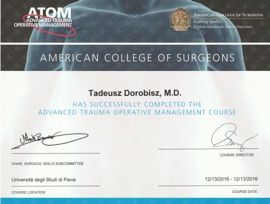Jestem absolwentem Uniwersytetu Medycznego im. Piastów Śląskich we Wrocławiu. Studia ukończyłem z wyróżnieniem w 2011 roku. W latach 2012 -2018 szkolenie specjalizacyjne odbywałem w Klinice i Katedrze Chirurgii Naczyniowej, Ogólnej i Transplantacyjnej Uniwersyteckiego Szpitala Klinicznego we Wrocławiu oraz w Klinice Chirurgicznej IV Wojskowego Szpitala Klinicznego we Wrocławiu. 04.2019 zdobyłem tytuł specjalisty z zakresu Chirurgii Ogólnej. Obecnie pracuję w w Klinice i Katedrze Chirurgii Naczyniowej, Ogólnej i Transplantacyjnej Uniwersyteckiego Szpitala Klinicznego we Wrocławiu na stanowisku asystenta. Jednocześnie od 2012 roku jestem uczestnikiem studiów doktorancki na Wydziale Kształcenia Podyplomowego Uniwersytetu Medycznego we Wrocławiu. W latach 2015-2019 pracowałem na stanowisku asystenta Zakładu Onkologii i Medycyny Paliatywnej na Wydziale Nauk o Zdrowiu Uniwersytetu Medycznego we Wrocławiu. Od 2019 roku pracuję w Katedrze Katedrze Chirurgii Naczyniowej, Ogólnej i Chirurgii Transplantacyjnej Uniwersytetu Medycznego we Wrocławiu na stanowisku starszego asystenta. Przebieg pracy zawodowej: 2012 – 2014 lekarz rezydent w zakresie specjalizacji z Chirurgii Ogólnej w Klinice i Katedrze Chirurgii Naczyniowej, Ogólnej i Chirurgii Transplantacyjnej USK we Wrocławiu 2014 -2018 – lekarz rezydent w zakresie specjalizacji z Chirurgii Ogólnej w Klinice Chirurgicznej IV Wojskowego Szpitala Klinicznego 2015 - 2018– asystent w Zakładzie Onkologii i Medycyny Paliatywnej na Wydziale Nauk o Zdrowiu Uniwersytetu Medycznego we Wrocławiu. Od 2019 - adiunkt w w Klinice i Katedrze Chirurgii Naczyniowej, Ogólnej i Chirurgii Transplantacyjnej USK we Wrocławiu. Jestem autorem i współautorem ponad 70 prac naukowych oraz doniesień zjazdowych. Uczestniczyłem w wielu ogólnopolskich oraz zagranicznych konferencjach naukowych. Ukończyłem kursy: • Kurs PEAC (Paris Endovascular Aortic Course) – leczenie wewnątrznaczyniowe tętniaków piersiowych, brzusznych, piersiowo brzusznych oraz łuku aorty, Paryż 2020 • Kurs Vascular International, Surgical Anatomy and Open Vascular Techniques, Bern 2020 • Kurs Fempop Treatment, Gandawa 2022 • Kurs chirurgii plastycznej z elementami mikrochirurgii w Klinice Chirurgii Plastycznej w Polanicy – Zdrój, 2015 • Kurs operacji żylaków metodą Flebogrif, Lublin 2016 • Kurs chirurgii urazowej w zakresie klatki piersiowej i jamy brzusznej, Pavia, Włochy 2016 • Kurs „Podstawy przeszczepiania wątroby”, Rotterdam, Holandia 2016 • Kurs Ultrasonografii Naczyń – Roztoczańska Szkoła Ultrasonografii, Zamość, 2014 • Kurs Ultrasonografii Naczyń Żylnych, Poznań, 2016 W szpitalu zajmuję się operacjami z zakresu chirurgii naczyniowej oraz chirurgii ogólnej.