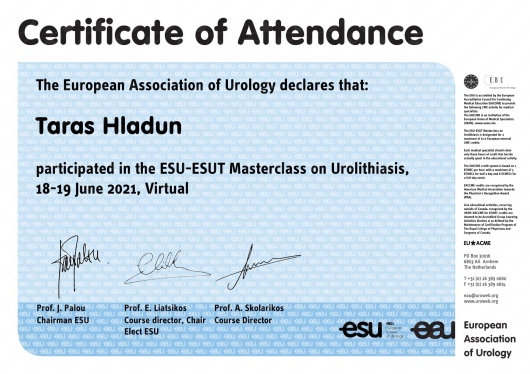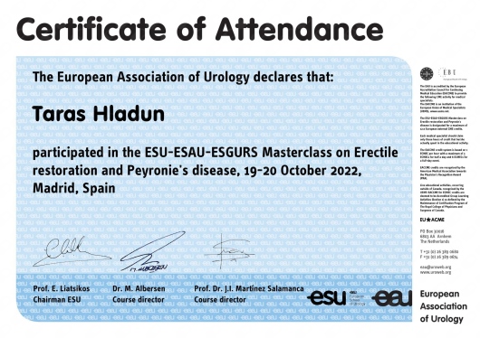 I am an active member of Polish Society of Urology (PTU), the European Association of Urology (EAU - European Association of Urology), and the International Society of Urology (SIU - Société Internationale d'Urologie).
