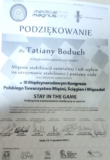 Jestem zachwycona poziomem wiedzy i umiejętności pani doctor. Fizjoterapia u Pani Tatiany przebiega prawidłowo i skutecznie. Polecam serdecznie!
