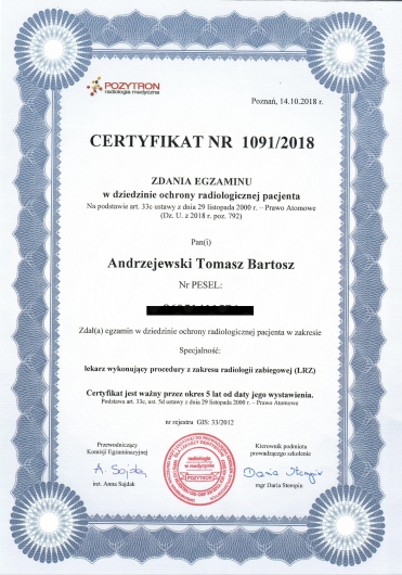Administratorem danych osobowych jest ZnanyLekarz sp. z o.o. z siedzibą w Warszawie przy ul. Kolejowej 5/7. Informujemy, że po przekazaniu przez nas Twoich danych osobowych wybranemu przez Ciebie Profesjonaliście, staje się on również administratorem Twoich danych osobowych i przetwarza je w celach związanych ze świadczeniem usług medycznych lub innych podobnych.
