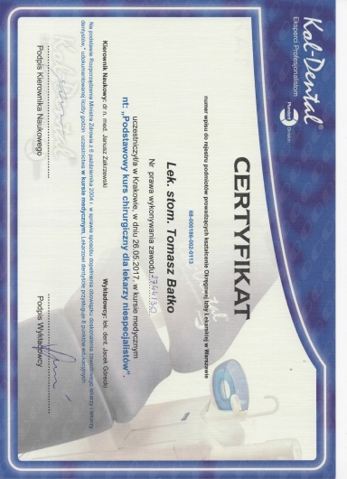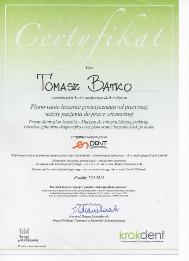 Chciałbym aby każdy stomatolog pracował tak jak Pan doktor Tomasz Batko... jest to w moim przypadku 100% skuteczność w miłej atmosferze. Leczenie zawsze przebiegało szybko i bez żadnych komplikacji.