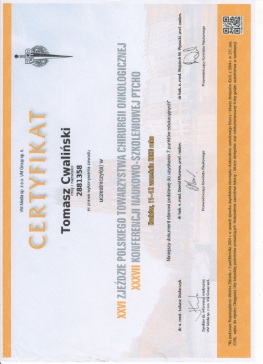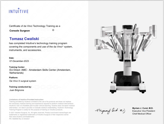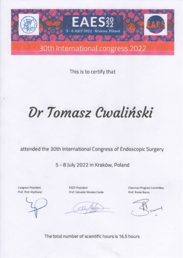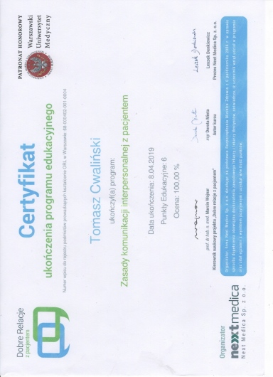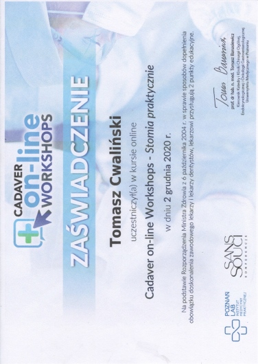 Od początku swojej pracy zawodowej nieustannie zwiększa swoja wiedzę oraz umiejętności chirurgiczne na licznych kursach, stażach zarówno w Polsce jak i za granicą.