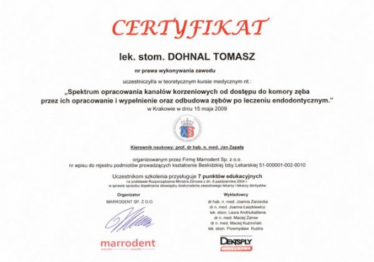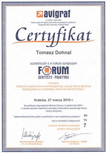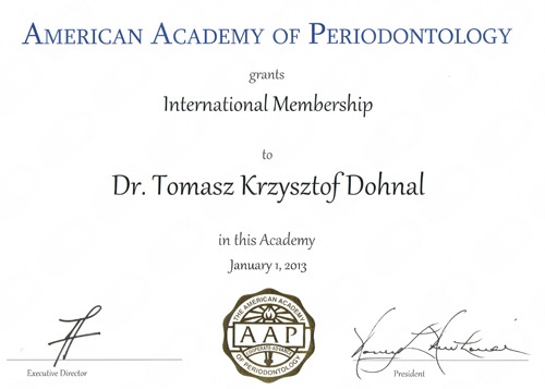 Dr Dohnal należy do prestiżowego American Academy of Periodontology.