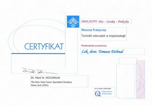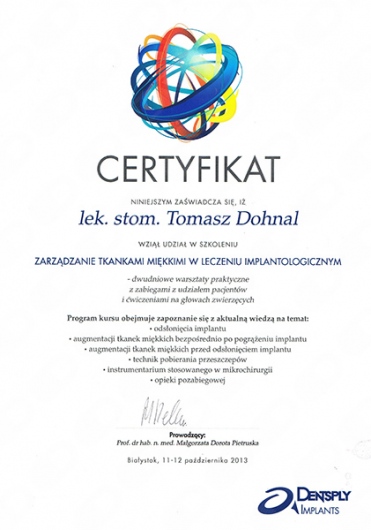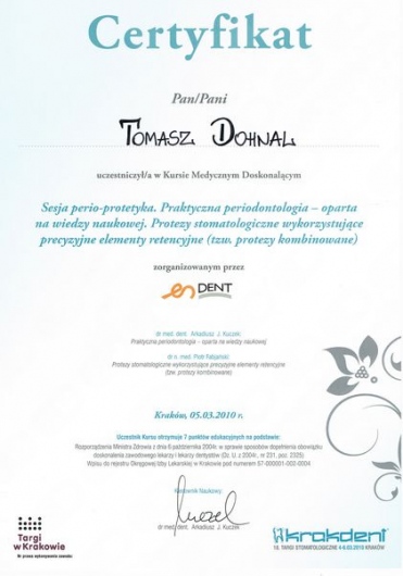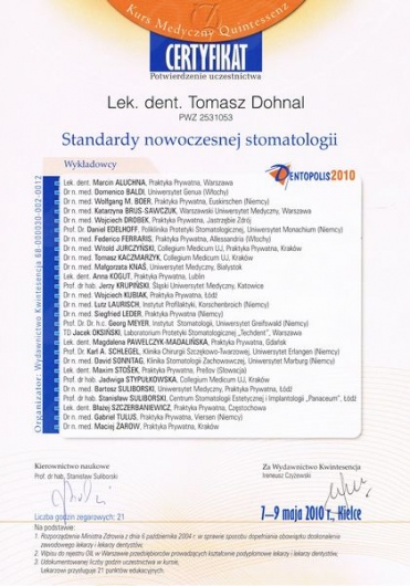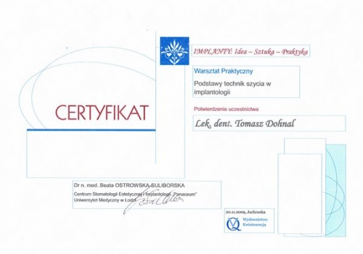 Dr Tomasz Dohnal to wysokiej klasy specjalista w dziedzinie implantologii, chirurgii stomatologicznej oraz periodontologii. Jego wrodzony perfekcjonizm, niebywała precyzja oraz wieloletnie doświadczenie, potwierdzone wykonaniem setek skomplikowanych zabiegów implantologicznych, stanowią gwarancję najwyższej jakości leczenia.