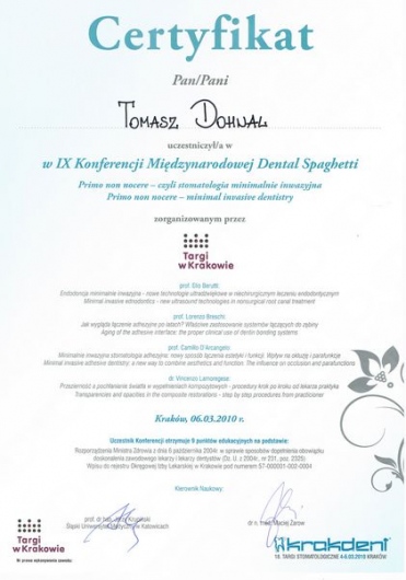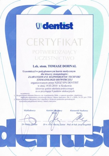 Ogromnie polecam dr Tomasza Dohnala. Jest bardzo dobrym, sympatycznym lekarzem, nawet w trudnych momentach pracy ze mną (a sprawiałam naprawdę niemało problemów) nie tracił cierpliwości. Moje zęby były zaniedbane, osłabione, mocno przebarwione i wymagały długiego leczenia. U dr Tomasza leczyłam zęby zachowawczo, kanałowo, protetycznie, zdarzały się też zabiegi chirurgiczne. Na koniec przeszłam metamorfozę uśmiechu. Jestem bardzo zadowolona :)