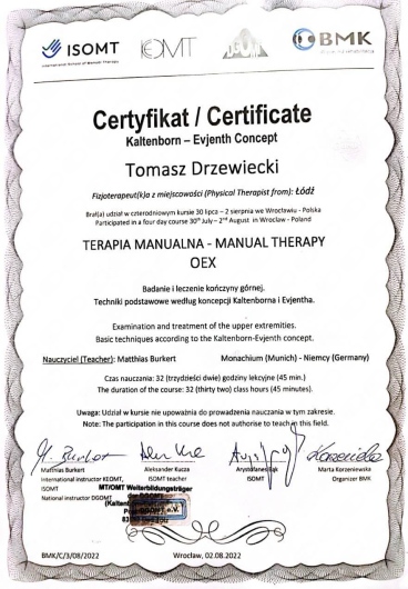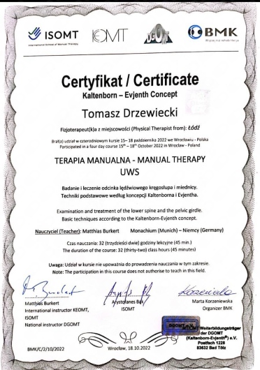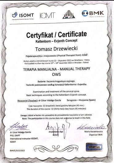 Jaki jest zakres porad oferowanych przez Tomasz Drzewiecki?Tomasz Drzewiecki to fizjoterapeuta. Na podstawie swojego doświadczenia i wykształcenia Tomasz Drzewiecki oferuje usługi takie jak: fizjoterapia.