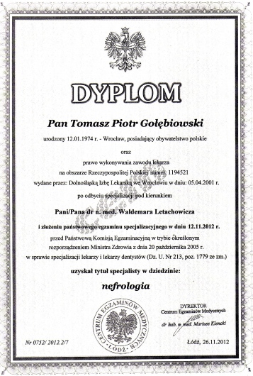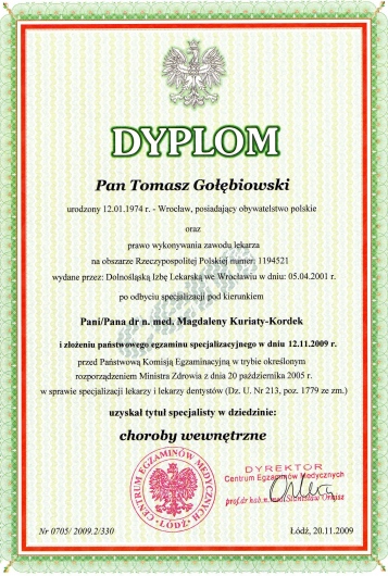 Jaki jest zakres porad oferowanych przez Tomasz Gołębiowski?Tomasz Gołębiowski to internista, nefrolog, transplantolog. Na podstawie swojego doświadczenia i wykształcenia Tomasz Gołębiowski oferuje usługi takie jak: konsultacja internistyczna, Konsultacja nefrologiczna, Wizyta domowa.