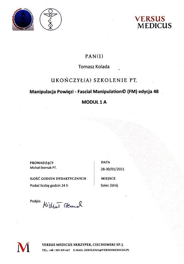 Była to moja pierwsza wizyta. Pan Tomasz zebrał szczegółowy wywiad, przeprowadził odpowiednie masaże oraz zalecił ćwiczenia. Wszystko odbyło się w bardzo profesjonalnej, życzliwej atmosferze. Na pewno skorzystam jeszcze w przyszłości z usług tego specjalisty.