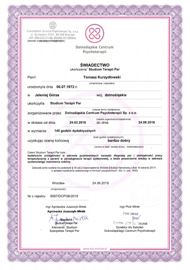 • Tomasz Kurzydłowski - Centrum Pomocy Psychologicznej "Integracja" • Terapia par (pierwsza wizyta) •