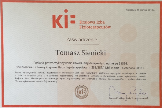 Jaki jest zakres porad oferowanych przez Tomasz Sienicki?Tomasz Sienicki to fizjoterapeuta. Na podstawie swojego doświadczenia i wykształcenia Tomasz Sienicki oferuje usługi takie jak: konsultacja fizjoterapeutyczna, rehabilitacja ortopedyczna, rehabilitacja stomatologiczna, Dry Needling suche igłowanie, Elektroliza EPTE, Neuromodulacja, Ocena siły mięśniowej, fizjoterapia.
