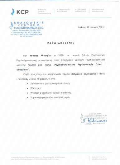 Praktyka terapeutyczna poddawana jest regularnej superwizji u certyfikowanego superwizora.
