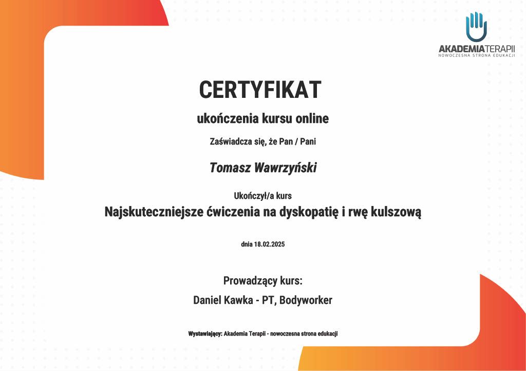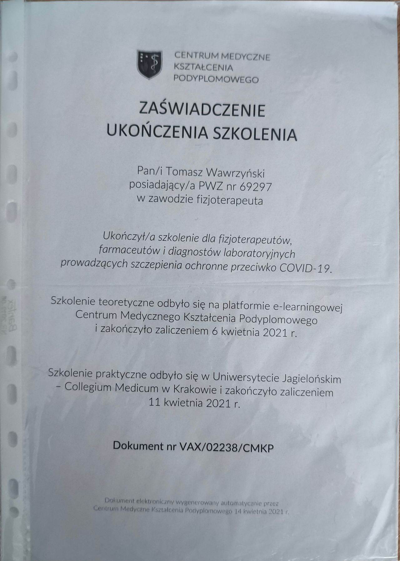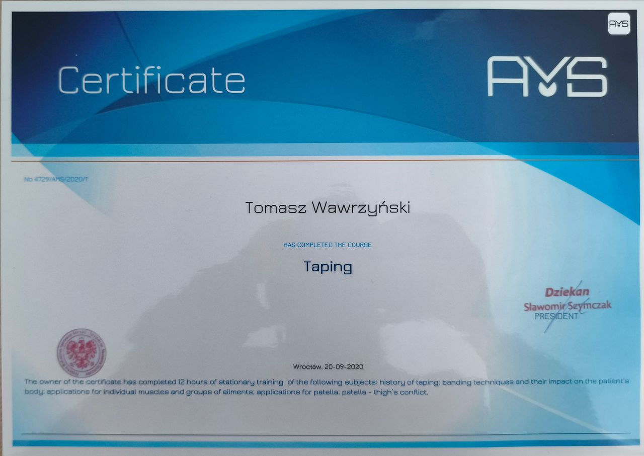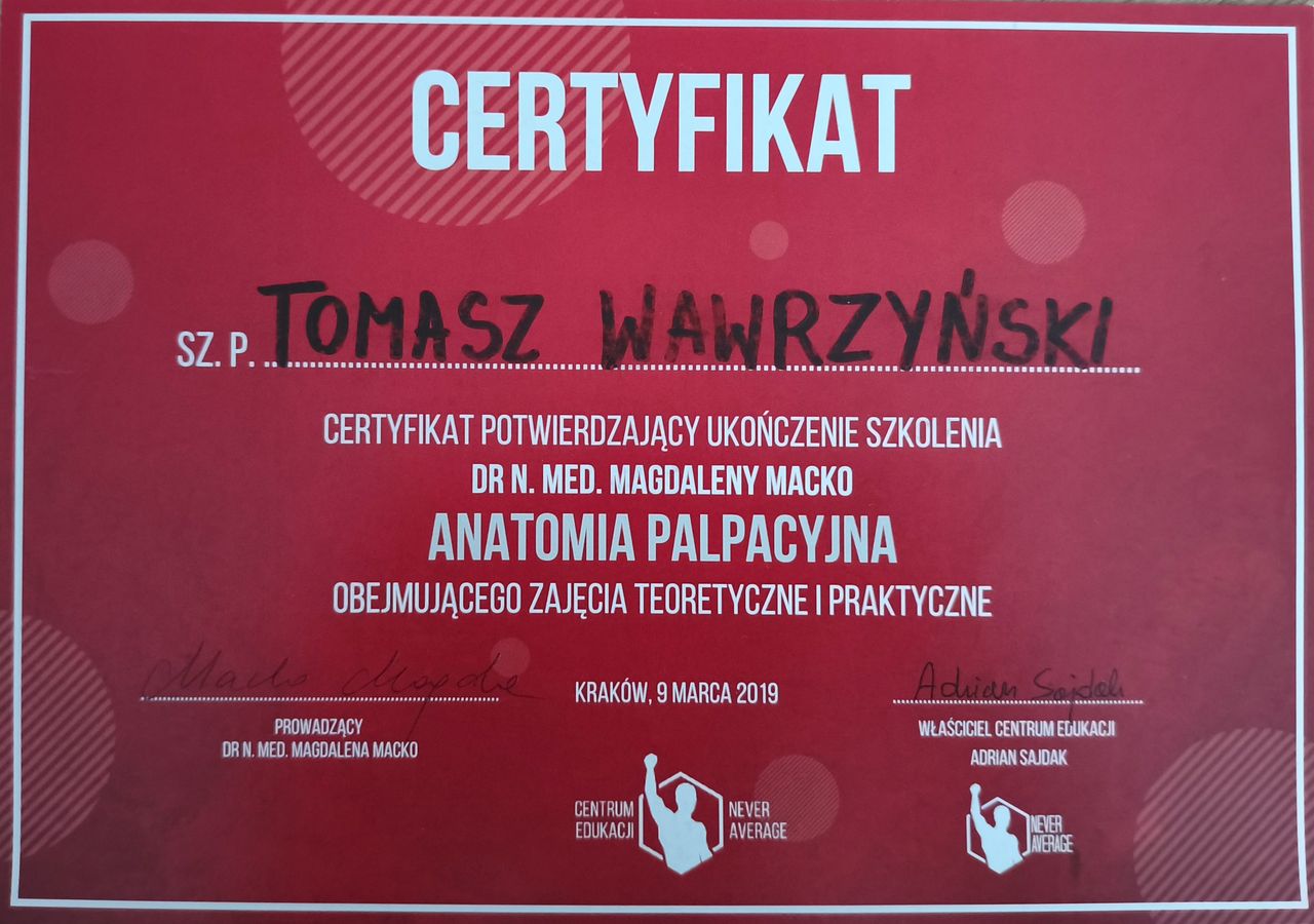 Nazywam się Tomasz Wawrzyński. Jestem Fizjoterapeutą, Terapeutą Manualnym z kilkuletnim doświadczeniem. Miałem przyjemność pracować z pacjentami z każdej grupy wiekowej, z wieloma różnymi schorzeniami, co pozwoliło znacznie poszerzyć moją wiedzę i umiejętności. W mojej terapii skupiam się głównie na precyzyjnej diagnostyce problemu, żeby skutecznie usunąć przyczynę dolegliwości pacjenta, a nie tylko skutek. Zawsze staram się sprostać oczekiwaniom pacjenta oraz dokładnie wysłuchuje jego potrzeb. Staram się dokładnie tłumaczyć przyczynę danych zjawisk i cel naszej terapii. Edukacja pacjenta jest dla mnie bardzo ważna, dlatego nie wypuszczam z gabinetu pacjenta bez odpowiedzi na jego pytania - oczywiście jeśli czegoś nie wiem, staram się dowiedzieć, bądź pokierować w odpowiednie miejsce.