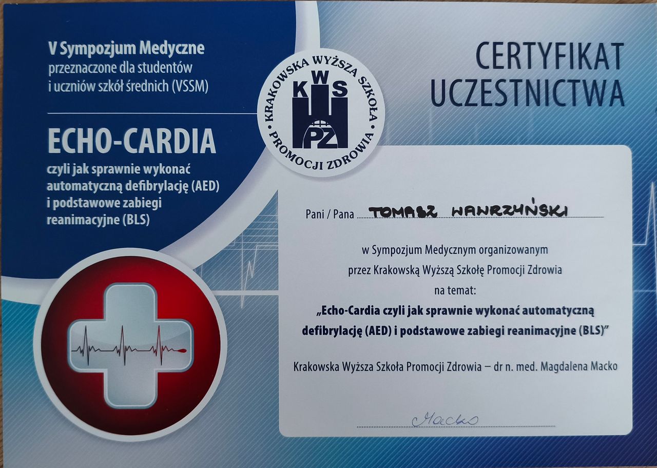 Poza kursami uczestniczę także w licznych konferencjach naukowych, aby poszerzyć swoją wiedzę o aktualne informacje ze świata medycyny.